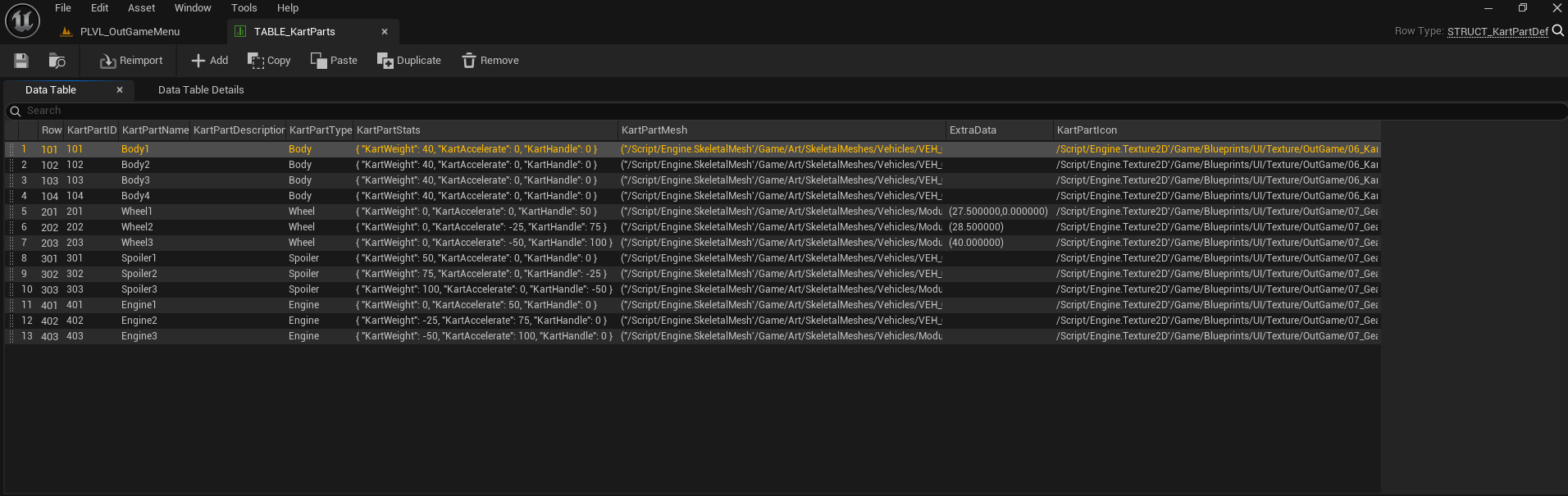 Created and balance 4 categories of kart modifications, with 3 pieces in each category